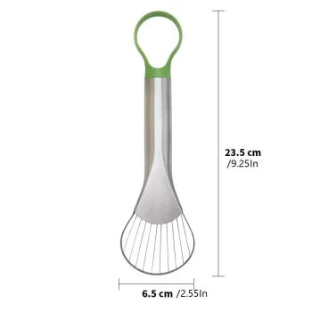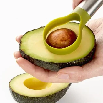 Enjoy mess-free avocado prep with this 3-in-1 slicer, pitter, and scooper. Designed for comfort and speed, this stainless steel tool makes kitchen work simple.