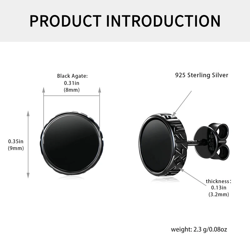 Make a bold statement with these 8mm black agate stud earrings in 925 sterling silver. Designed for both men and women, they’re stylish, timeless, and hypoallergenic. Free SG shipping.