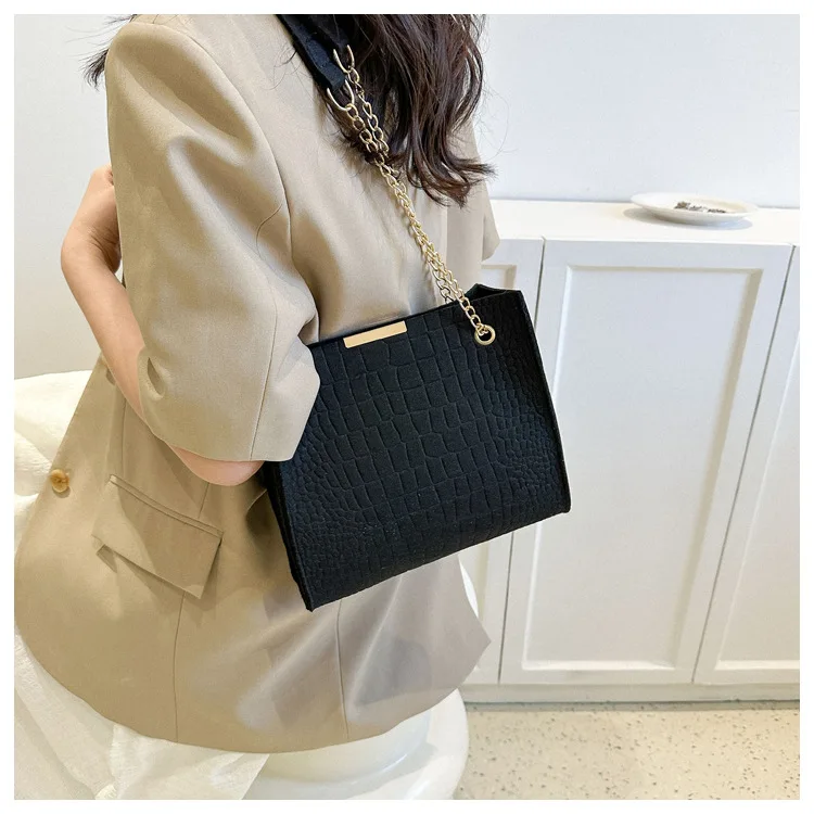 Elevate your style with this elegant felt shoulder bag for women. Trendy design, spacious, and perfect for everyday use. A must-have accessory!
