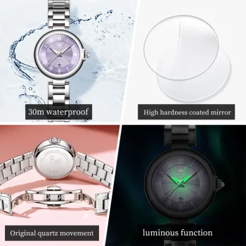 Add a touch of luxury with this OLEVS quartz watch for women. Waterproof and crafted from stainless steel, it’s perfect for any outfit. Includes free shipping to Singapore.