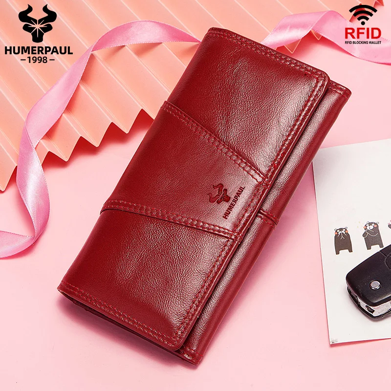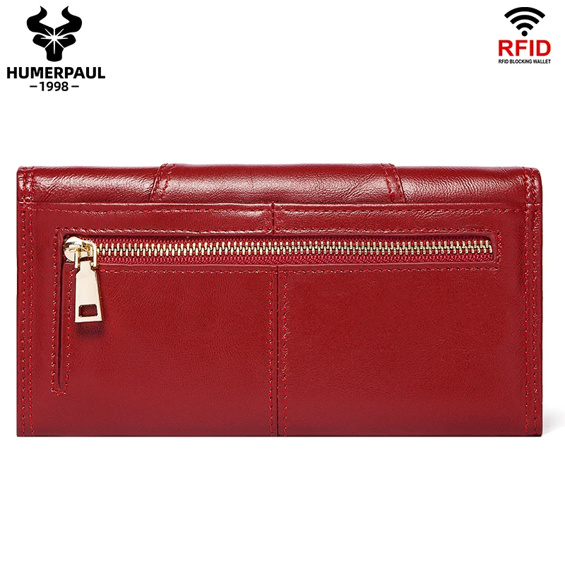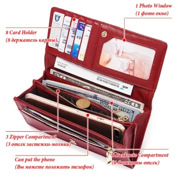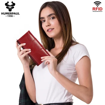 This stylish leather clutch wallet offers RFID protection, slots for cards, phone storage, and a chic look. Includes free shipping to Singapore.