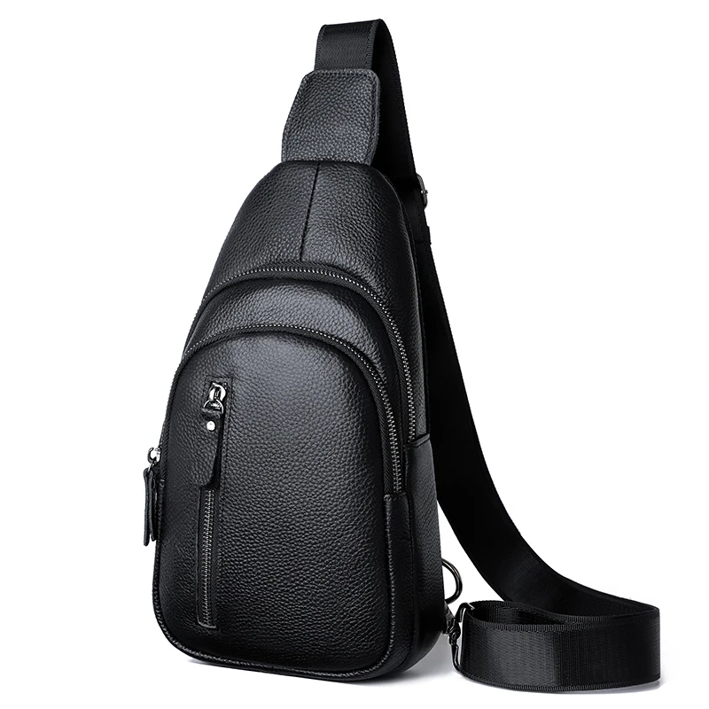 Crafted from genuine leather, this sleek men’s sling bag offers zip storage and all-day comfort. Wear it across your chest or shoulder for daily style and function.