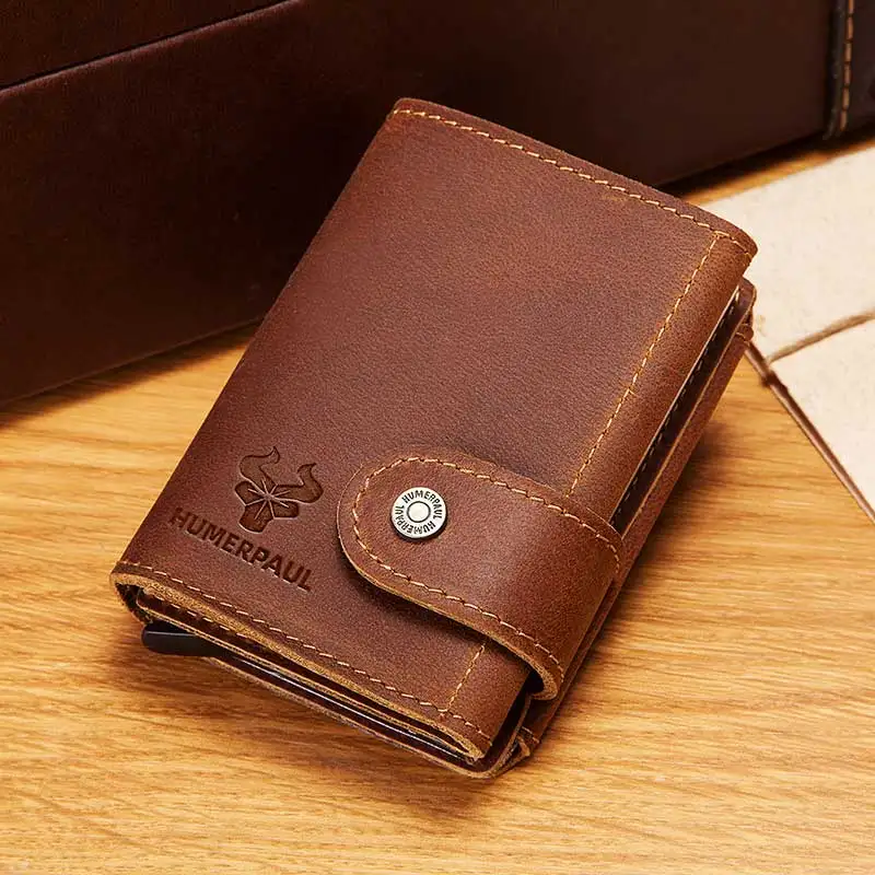 Stylish and practical, this genuine leather wallet for men includes a hasp closure, multiple slots, and a compact size that fits easily in pockets or bags.