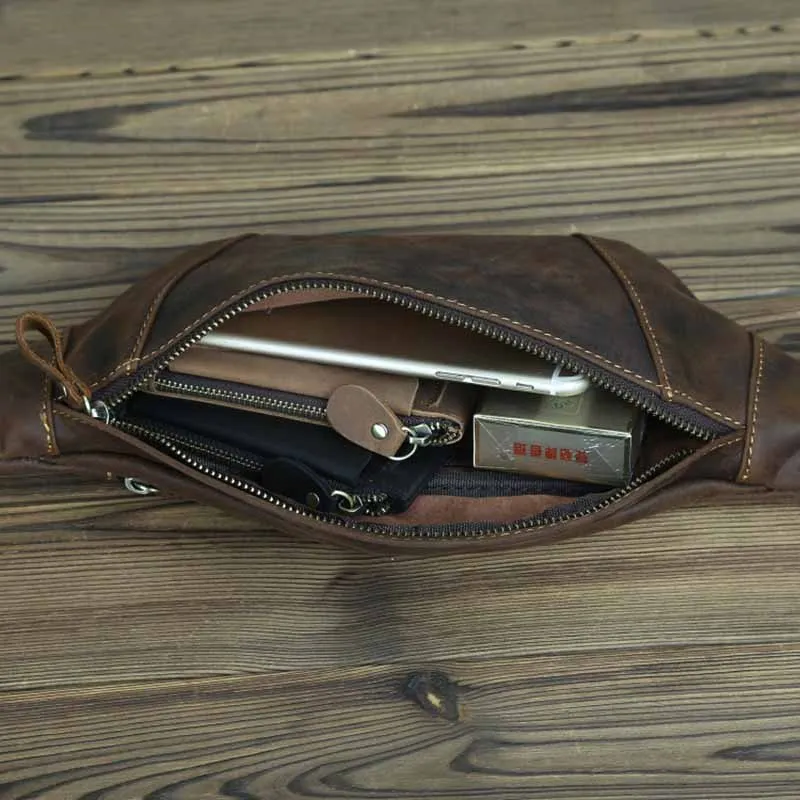 Stay hands-free with this compact leather waist bag. Made from durable cowhide, it’s ideal for travel or daily use, keeping your essentials close and secure.
