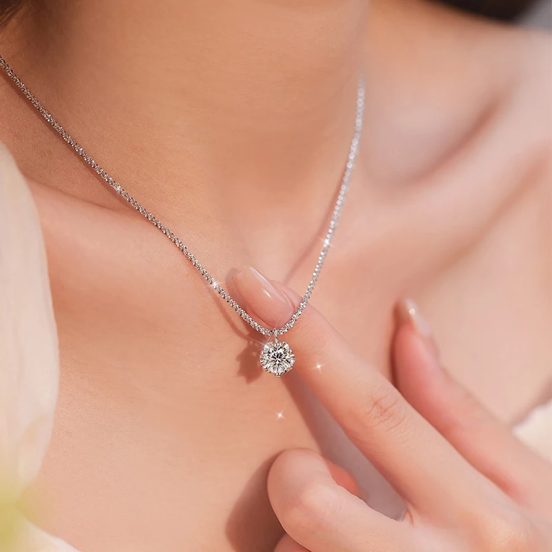 This GRA-certified moissanite pendant necklace features a 6-prong setting and elegant S925 sterling silver chain. Perfect for timeless elegance with free shipping to Singapore included.