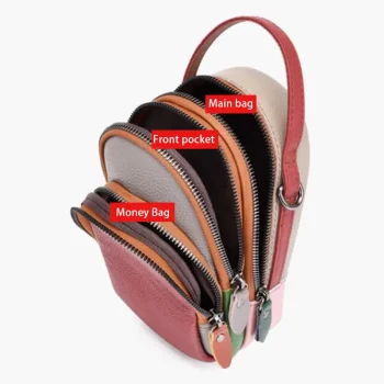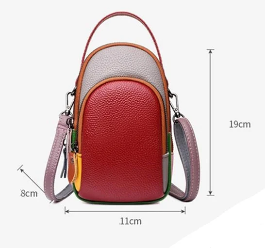 Stay stylish and organised with this genuine leather multicolour crossbody bag. Perfect for carrying your phone hands-free during daily outings or outdoor trips.