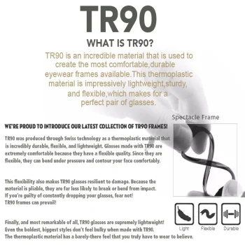 | Frame Material | TR90 unbreakable and super light frame |
