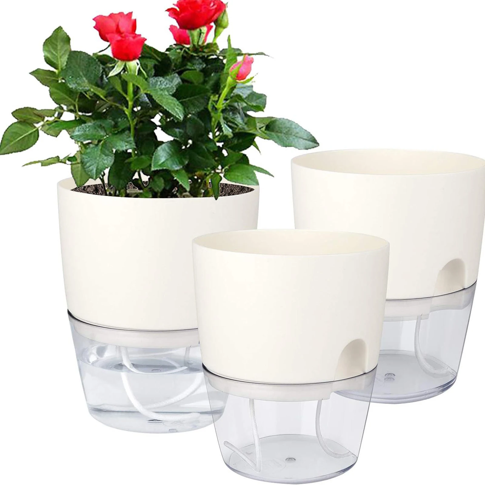 Maintain thriving plants effortlessly with these compact self-watering planters. Their modern look, visible water reservoir, and dual-layer build make them perfect for any indoor space.