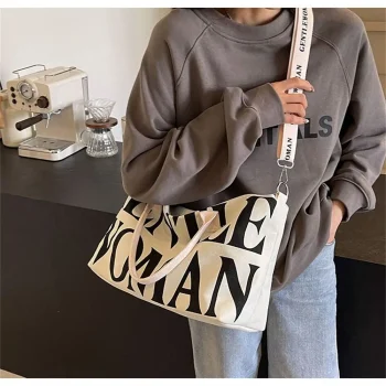 Enjoy style and practicality with this large canvas handbag and crossbody bag. Perfect for daily use, offering ample space and a trendy look.
