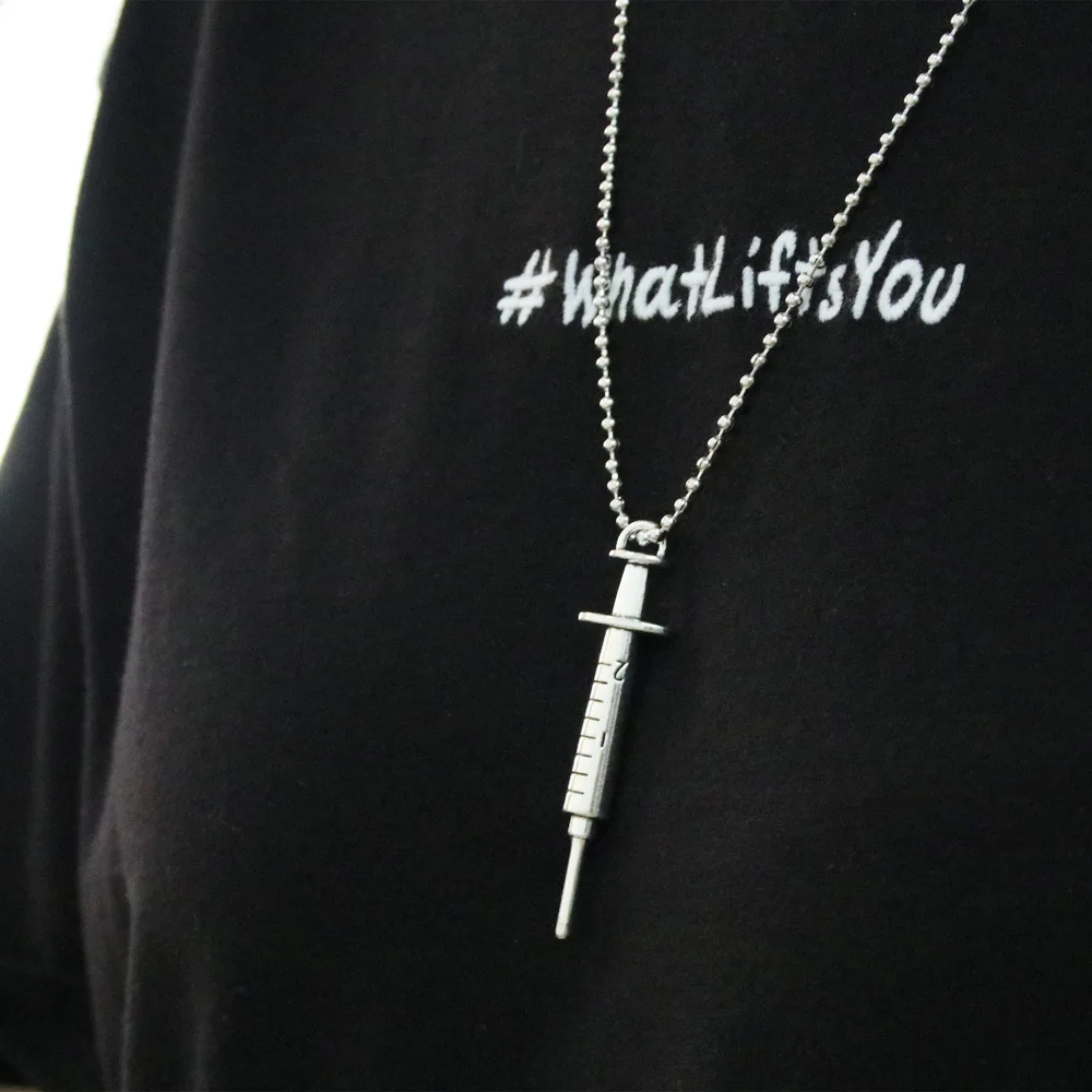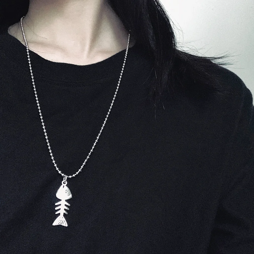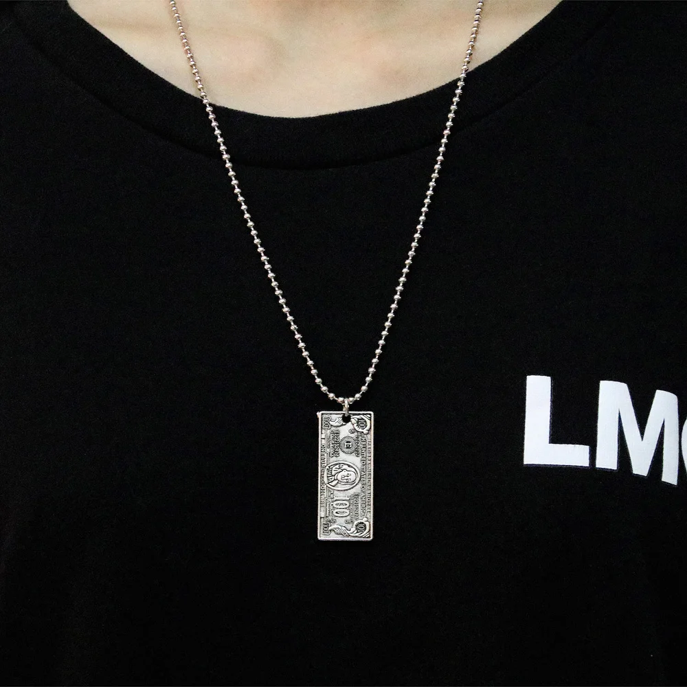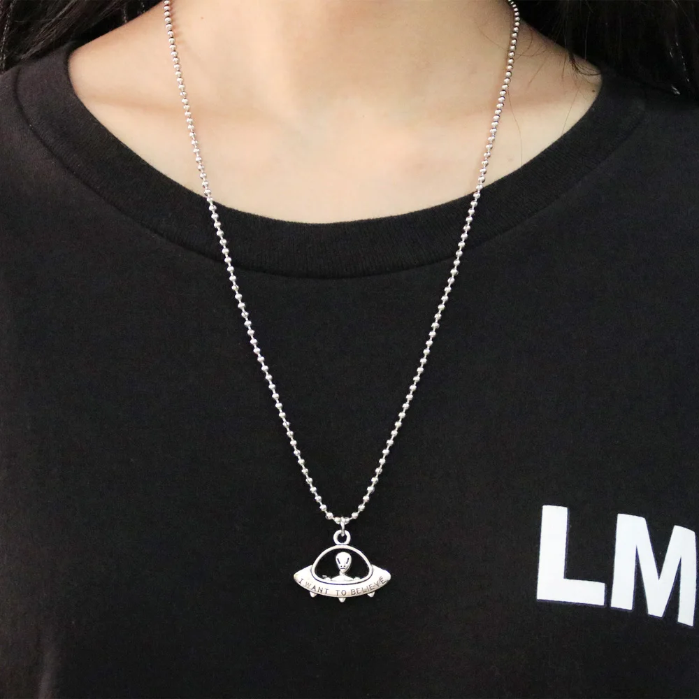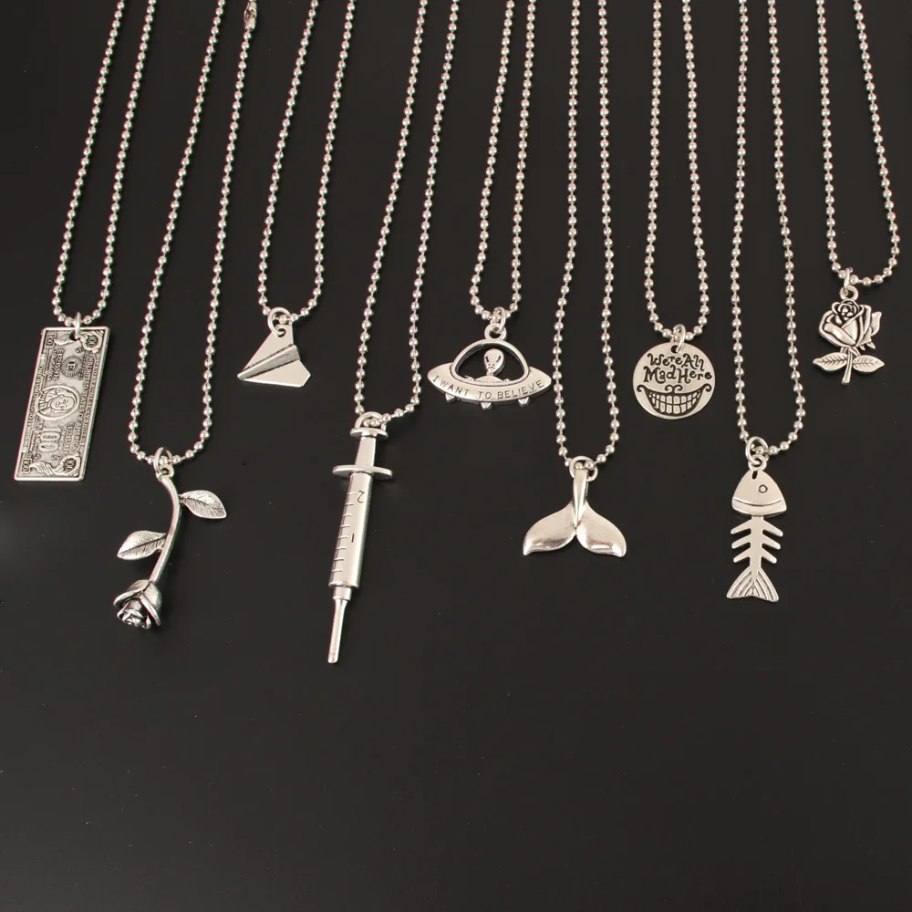 Stand out by shopping this unique metal bead necklace for men and women. Stylish, durable, and versatile, perfect for adding an edgy touch to any outfit. Ideal for everyday wear. Stand out and charm with rose, alien UFO, smiley, dollar bill, nursing syringe, fish bone and paper airplane pendants.