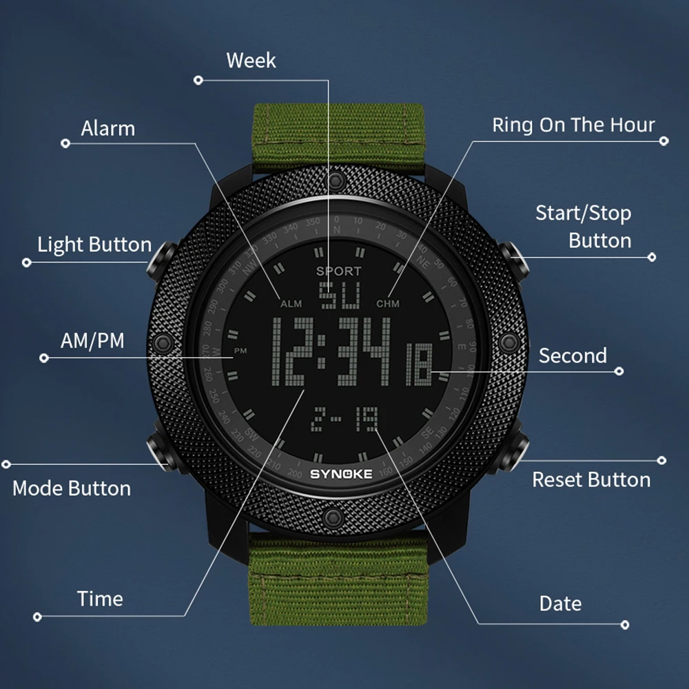 Stay on time and on track with this 50M waterproof digital watch for men – ideal for running, swimming, and rugged outdoor sports. Built for durability and style.